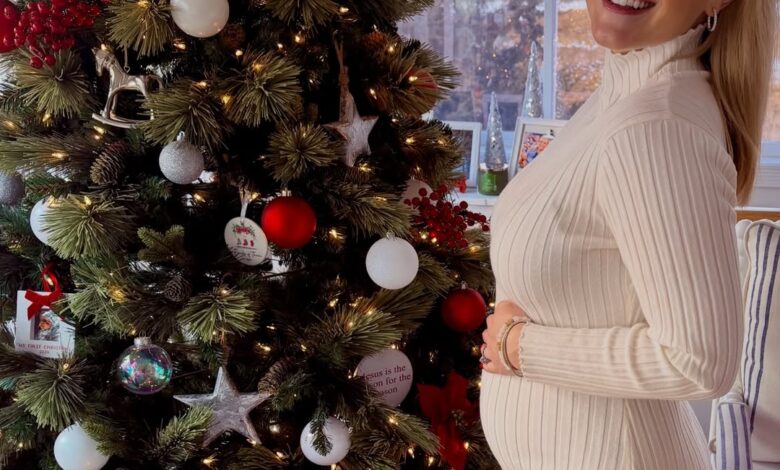 ونشرت ليفيت صورًا لها أمام شجرة عيد الميلاد وهي تمسك بطنها، وكتبت: “أفضل هدية كريسماس على الإطلاق، طفلة ستولد في مايو 2026”.
