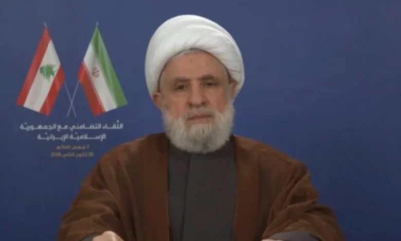 اكد الأمين العام للحزب اللبناني نعيم قاسم، أن التهديدات التي وجهها الرئيس الأمريكي دونالد ترامب للمرشد الأعلى في إيران علي خامنئي تمثل تهديداً لعشرات الملايين من أتباعه، مشدداً على أن الحزب لن يكون على الحياد في أي حرب على إيران. وقال قاسم في كلمة خلال اللقاء الجماهيري تضامنًا مع ايران في الضاحية الجنوبية ببيروت، إن المساس بخامنئي هو اغتيال للاستقرار وللوضع في المنطقة والعالم، نظراً لانتشار مؤيدي ومحبي الولي الفقيه في مختلف البلدان، مبيناً أن الحزب معني بمواجهة هذا التهديد ويعتبره استهدافاً مباشراً له، ويمتلك كل الصلاحية لفعل ما يراه مناسباً للتصدي له، معتبرا ان الحرب على إيران في هذه المرحلة قد تشعل المنطقة بأكملها